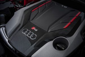Inside you’ll find Audi’s Super Sport seats with contrasting honeycomb stitching and you guessed it, carbon inlays replacing the standard car’s brushed alloy trim.