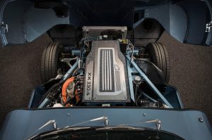 The car is identical to the classic original except that its conventional XK engine has been replaced by a 295 hp electric motor and a battery powerful enough to give a 170-mile (273km) range.