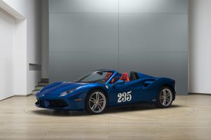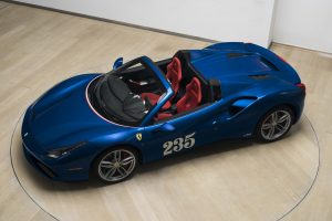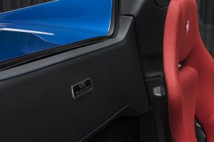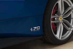 The 488 Spider pictured here wears the same blue exterior found on the original race car, with the number 235 emblazoned on the door panels, and a red leather interior. Blue contrast stitching looks phenomenal and don’t forget you get the 70th anniversary plaque on the rear firewall.