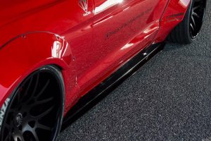 Unlike the Honda NSX by Liberty Walk, this Mustang has received the whole treatment including the riveted-on fenders, lower body aero made up of a front splitter and side skirts, a duck-tail and a customized hood.