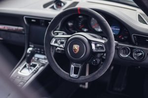 Each of the British Legends 911’s come with a Union Flag and a 911 Carrera 4 GTS British Legends Edition motif on the door sills, and this is illuminated in a colour that corresponds to the car’s paint. You also get an embossed centre console and B-pillars bearing the drivers name.
