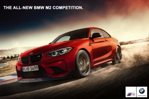 To make things even more confusing, the renderings use the two new colour options for the M2 Competition – Silver Hockenheim and Sunset Orange. The M2 Competition (CS) will also continue to be offered in Alpine White, Black Sapphire, Mineral Grey and Long Beach Blue Metallic but inside, the M2 CS will enhance the look of the interior of the Dakota black leather upholstery with contrast stitching in Polar Blue or Kyalami Orange and the option of normal or perforated leather.