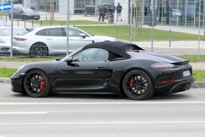 Output for the 4.0-litre unit is rated at 493 horses in the 911 GT3, but the Boxster Spyder’s power may be slightly down on this in order to leave breathing space for its more expensive sibling. What output can we expect? Well the previous Spyder pushed out 370 hp from the 3.8-litre flat six and the new Boxster/Cayman GTS will have 361 hp so an output for the top Boxster of around 420 hp is likely.