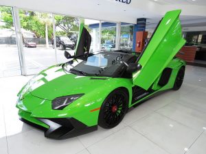 What you see here is a 2017 Lamborghini Aventador SV Roadster and not only is it finished in one hell of an eye-catching colour, it is also for sale in Florida.