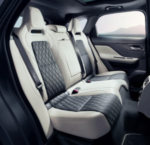 Inside, the F-PACE SVR features slimline performance front seats that provide enhanced lateral support and have signature lozenge quilting and embossed SVR logo. In addition, unique rear seats echo the heavily sculpted designs up front and the SUV’s sports car character is underlined by the Sport Shift Selector. Finally, the SVR branded steering wheel features tactile aluminium paddle shifters.