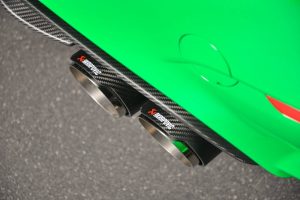 It has also been fitted with an Akrapovic exhaust system which is housed by a stunning carbon fibre diffuser and given a purposeful look thanks to carbon tail pipe ends.