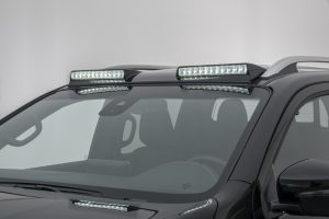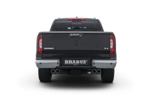 The BRABUS lighting module for the roof of the X-Class offers exciting looks and further enhanced safety thanks to the increased light output. This precise-fit component features twelve powerful LEDS on either side, which provide even better illumination of the roadway in the dark when the driver activates the flashers or high beams. Four tailpipes in the striking design of a BRABUS sport exhaust lend the pickup an extravagant rear appearance.