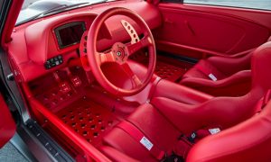The Vicious Mustang is not only extremely powerful, features modern brakes and a modern suspension system, but it looks the part too. Credit goes to a body kit that uses a mini-tub structure with 2-inch custom flared fenders and a rear diffuser resembling that of a Ferrari F430. Inside is a red-themed interior that offers a pair of Sparco seats and some safety, racing harnesses. There is also a Motec colour dash unit contrasted by classic air-conditioning.