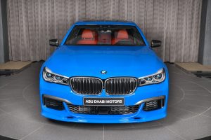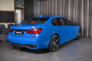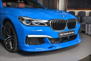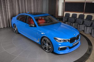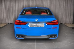 This particular M760Li was spec’d with a seriously brash Santorini Blue exterior and a flashy Fiona Red leather interior and if you were to take a quick look at it, it looks just like a toy car. Just like their other bold M760Li creations, this is fitted with the 3D Design kit to give it more presence up front and this is a big thumbs up from us.