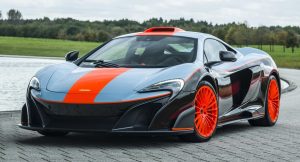 In addition to the F1’s racing theme, the 675LT is also equipped with a set of Dayglo Orange 20-spoke wheels; these are matched with the owner’s initials painted in the exact same colour on the sill badges. McLaren Special Operations also saw it fit to add louvered front wings, a roof scoop upgrade and a carbon fibre airbrake.