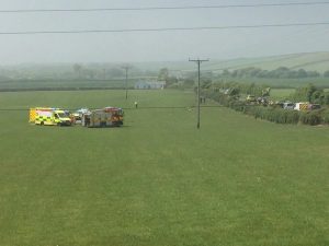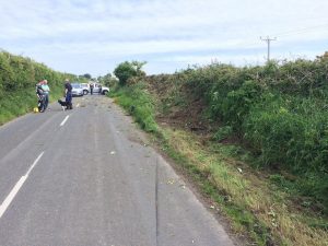 At this stage the exact details of the incident are scarce but judging by the pictures, the driver of the track machine must have misjudged a corner resulting in the climb of a large embankment on the side of the road. It was moving with enough pace to tumble rather far from the ‘launch’ site before coming to rest on its roof.