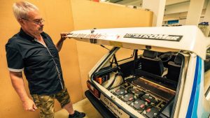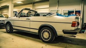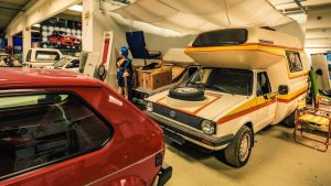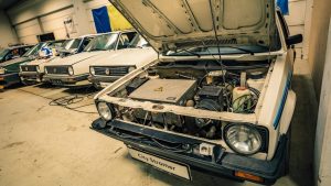 The oldest of Juza’s collection is a 1974 pre-production Golf fitted with a forward-sliding door. He also has two all-electric Golfs, known as CitySTROMer I and II, which used gel-electrolyte batteries. Among the rarest in his “Golf Pack” is one of the 71 Golf G60 Limited models, which were hand-built by Volkswagen Motorsport. This car produced 207 horsepower from a supercharged four-cylinder engine. He also has a 181-hp 1989 Rallye Golf.