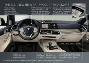 Unsurprisingly, the BMW X7 also boasts a host of driver assistance systems. An Active Protection and Active Driving Assistant system with Blind Spot Detection, Lane Departure Warning, Rear and Frontal Collision Warning, Pedestrian Warning with City Collision Mitigation as well as Cross Traffic Alert and Speed Limit Information are all part of the standard features.