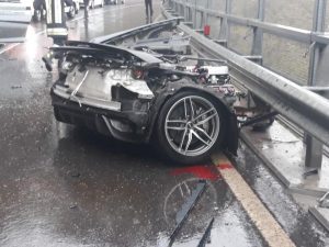 The crash occurred a couple days ago in Northern Italy, and as you can see from the images, the damage to the Audi R8 is extensive to say the least.