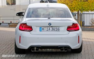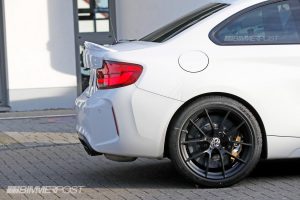 The styling changes aren’t radical, but the car has been equipped with a larger front spoiler and what appears to be a power dome hood. The bulge is pretty noticeable in certain pictures and it’s not present on the M2 Competition.