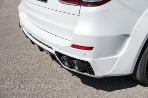 Also available is a titanium exhaust system that features four 102 mm tailpipes. This option is coupled with G-Power’s signature Hurricane RR alloy wheels which measure 23-inches and are wrapped in 315/25 high-performance tyres to mark the SUV from ordinary X5’s.