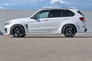 With flared wheel arches, bespoke side skirts, reworked front and rear bumpers featuring wider air intakes and new diffuser respectively, G-Power’s Typhoon package gives the BMW X5 a much more aggressive look than the stock model. There is also an option of a carbon fibre bonnet that complements the revised intakes to eradicate excess heat from the engine bay.