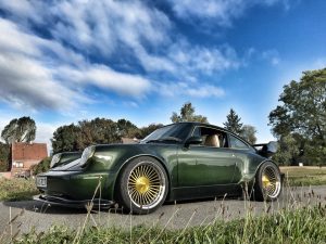 The custom-made body kit is covered in a special paint job that’s applied in 30 layers. This unique shade of green is then coupled with a set of Wheel-Tec 24 gold-painted wheels. While this 911 Turbo features extensively modified body work and retro-style lights which the tuner says were acquired from Kaege, the powertrain and brakes are still sourced from Porsche.