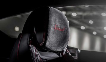 Inside you will find a unique two-tone leather and Alcantara treatment that covers the seats, steering wheel, and portions of the dash.