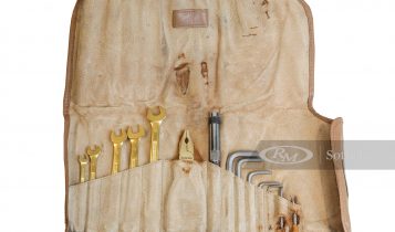 The toolkit has always been a work of art and even though this particular offering comes from an F1 that caught fire and carries scorch marks on the leather roll and screwdriver bits, it still has a high pre-sale estimate of £10,000 (approx. R200k).