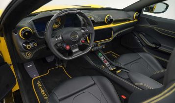 Inside you are greeted with black leather with striking yellow accents to provide a visual connection with the vividly painted exterior.
