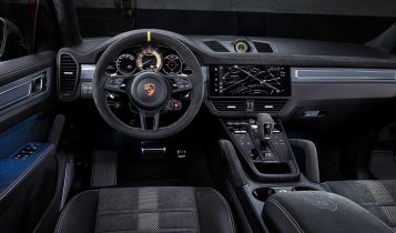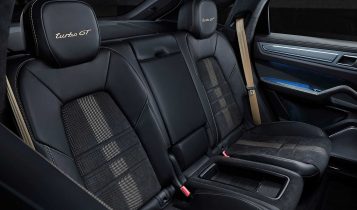 The Turbo GT receives suspension that is 17 mm lower than what is found on the Cayenne Turbo model while the three-chamber air suspension is up to 15 per cent stiffer, depending on the selected mode. Rear-wheel steering and Power Steering Plus systems are also said to imbue the GT with faster steering and handling.