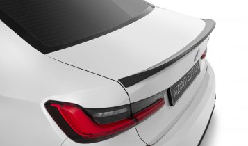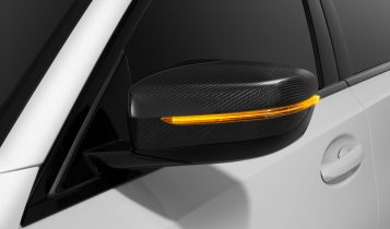 At the back, you will find black chrome trim for the exhausts, a high-gloss black rear diffuser and a carbon fibre rear spoiler.