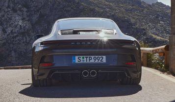 As you can see the biggest difference is the lack of a rear wing which is replaced by an automatically extending rear spoiler. The front fascia also gets a custom grille, the window surrounds now wear a silver trim, the exhaust comes in a standard silver finish (with satin black as an option), and there’s a sleek GT3 Touring badge located on the rear bumper.