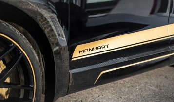Visually you will notice the typical Manhart black and gold theme both inside and out. New components include wider fenders, a front splitter, side skirts, a double rear spoiler, and a more pronounced diffuser housing the new stainless steel exhaust system. This system comes with active valves and four 100 mm tailpipes with ceramic or carbon coating.