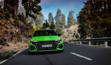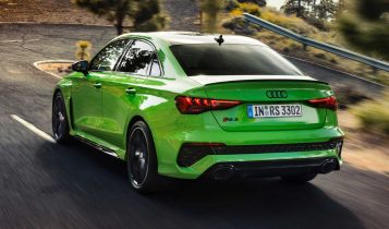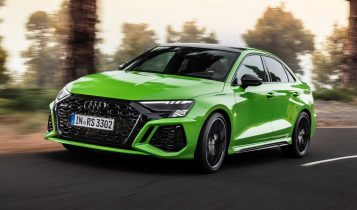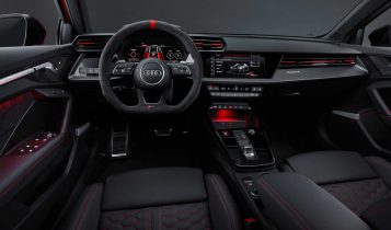 Thanks to the 2.5-litre turbocharged inline-five, Audi claims the 2022 RS 3 has the best in class acceleration. The five-pot delivers 394 hp (294 kW) and 500 Nm (369 lb-ft) of torque allowing the 0 to 100 km/h sprint to take place in just 3.8 seconds. Audi also boasts that it will hit 250 km/h (155 mph) in standard form or 280 km/h (74 mph) with an optional performance package. And if you opt for those ceramic front brakes, the RS 3 can hit a staggering 290 km/h (180 mph), making it the fastest vehicle in its class.