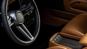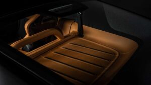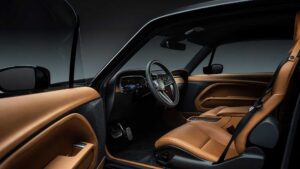 Both the exterior and interior of the electric Mustang keep the original car’s spirit, though both come “equipped with state-of-the-art components.”