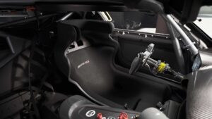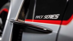 The Track Series’ safety cell meets the latest FIA standards. There’s a high-tensile steel roll cage that bolts to the vehicle’s aluminium space frame. A five-point harness holds onto the driver. There’s an extraction hatch in the roof and a fire extinguisher system.