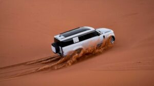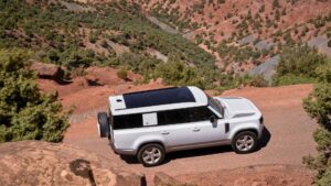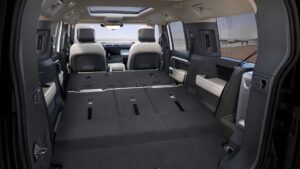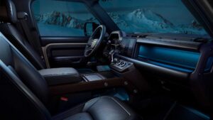 Buyers get a choice of three mild-hybridised powertrains, familiar from the shorter Defender models and each paired with an eightspeed ZF automatic gearbox. The P300 petrol straight-six opens the line-up with 296 hp (221 kW) and 470 Nm (347 lb-ft), while the P400 brings 395 hp (295 kW) and 550 Nm (406 lb-ft). Diesel power comes in the form of the 296 hp (221 kW), 650 Nm (479 lb-ft) D300 straight-six.