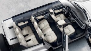 Sold in S, SE, X-Dynamic SE, and X trim levels, as well as a First Edition model, the longest Defender in history has been extended by 34 cm (13.38 in) at the back, which is mostly visible in the extended rear overhang. It provides more room inside the cabin for the third row of seats giving the rugged SUV a 2+3+3 seating configuration.