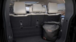 The manufacturer states the third row is substantial enough to comfortably accommodate up to three adults with generous headroom available on all eight seats. Climbing in should be no problem either thanks to the foldable and moving second row of seats.