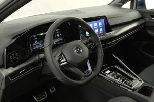 Hop inside and you will find Nappa leather-covered sports seats as well as dashboard and door panels finished in carbon fibre – a first for Volkswagen.