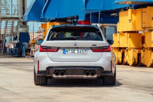 To accommodate the M-specific rear axle, the M3 Touring is 83 mm (3.3 inches) longer and 76 mm (3 inches) wider than the standard wagon. Naturally, it’s a bit lower as well, and since there’s a big open space behind the seats, additional bracing is installed underneath the car for added stiffness.