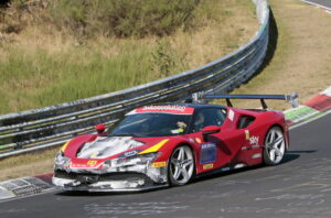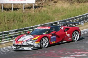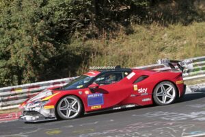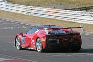 Ferrari is back at the ‘Ring doing some testing of prototypes and one of them is based on the SF90 but is sporting an enormous wing at the back.