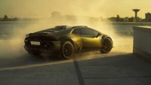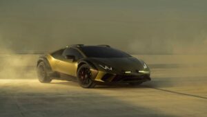 You might notice that the Sterrato is slightly down on power compared to the 632 hp Huracán Tecnica and the main reason for this is the revised intake system. The 5.2-litre V10 pumps out 602 hp (449 kW) and 560 Nm (413 lb-ft) of torque. That results in a claimed 0 to 100 km/h (62 mph) time of 3.4s, this while running on the standard Bridgestone Dueller All-Terrain 002 tyres. The chunkier rubber is also why the top speed has been limited to 258 km/h (160 mph), which is the lowest top speed of any Lamborghini since the monstrous LM002 off-roader went out of production.