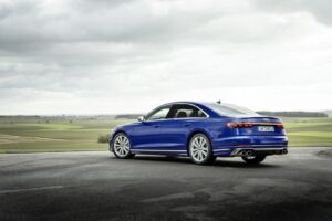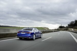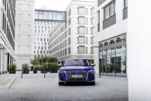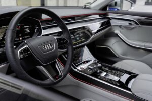 The Audi S8 quattro comes highly equipped with specifications and features which proudly showcase its performance, digital and design points. The following standard equipment highlights are worth mentioning: Digital HD Matrix LED headlights & OLED rear lamps with light signature, quattro with sports differential, dynamic all-wheel steering, adaptive cruise control, Audi connect2X and infotainment services, predictive active suspension, Valcona leather upholstery with diamond stitching, seat ventilation and massage function, Bang & Olufsen Premium Sound with 3D, Audi virtual cockpit Plus, Head-up display (to name a few).