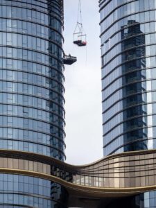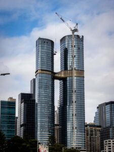The AUD 3 million Senna was hoisted 57 levels to the top of the Sapphire by the Gardens building on Exhibition Street this morning.