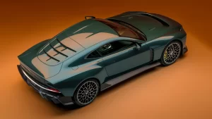 Under that very sculpted hood sits a 5.2-litre twin-turbo V12 that sends 705 hp (526 kW) and 753 Nm (555 lb-ft) of torque to the rear wheels through a bespoke six-speed manual gearbox. According to Aston, the Valour is the only front-engined V12 sports car with a manual transmission.