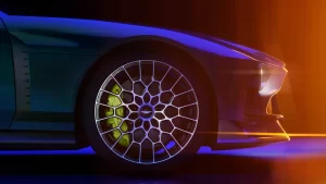 A triple-exit lightweight stainless steel exhaust helps 7kg compared with a regular exhaust, and Aston says it “emits a gloriously heavyweight soundtrack”.
