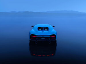 Symbolizing the brand’s prowess and the evolution of its craftsmanship over the past eight years, the two colours adorning this special Super Sport – a distinctively created fading ‘French Racing Blue’ and an ‘Atlantic Blue’ – seamlessly blend into each other, creating a mesmerizing side profile accentuated by wheels mirroring the front and rear hues. A bespoke blue Bugatti badge, exclusively designed for this farewell edition, sits proudly within the grille. Adding a touch of grandeur, hand-written locations and events that helped build the legend of the Chiron adorn its bodywork. Inspired by the philosophy of ‘bullet speed’ – a blurring of vision at high speeds – this unique Chiron Super Sport hints at its incomparable top speed, even while standing still.