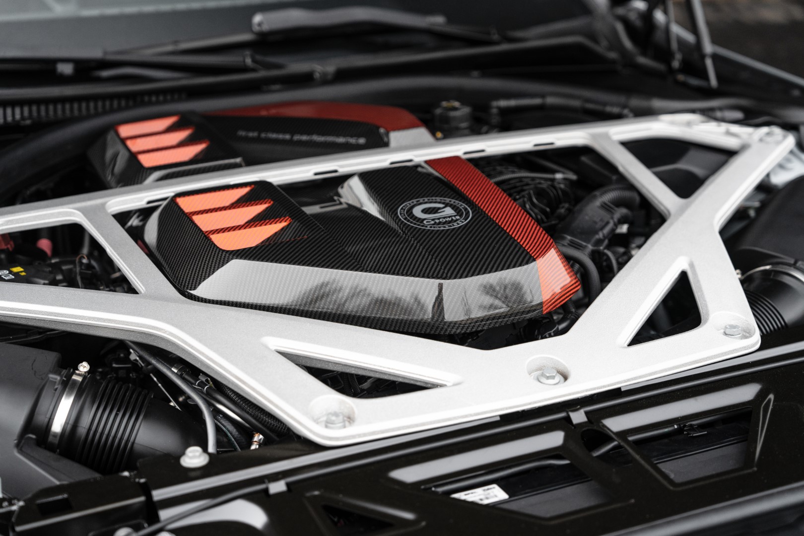 G-Power fits their own 20-inch forged wheels in a two-tone finish, wrapped with high-performance tyres (285/30 R20 front and 295/25 R20 rear). The gold-painted brake calipers suggest the presence of the optional carbon-ceramic braking system.