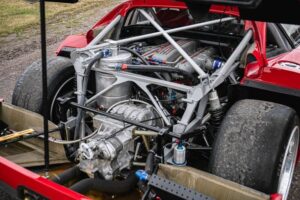 Instead of the standard F40’s twin-turbocharged V8, they opted for a naturally-aspirated Ferrari 550 Maranello’s F133 V12 engine, paired with a Hewland transmission. This unconventional powerhouse was complemented by lightweight F40 GTE-style bodywork, a full FIA roll cage, and custom-made suspension. Further refinement came in 2005 with the installation of a Hewland NLT 6-speed sequential gearbox.