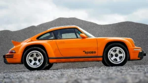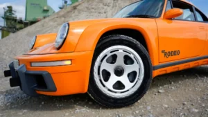 The Rodeo isn’t your average Porsche. Built on a bespoke, carbon-fibre monocoque with an integrated roll cage, it boasts extensive use of the lightweight material for its boxy, Tonka-truck-like fenders. This keeps the weight down which is easily handled by the potent engine behind the rear axle.