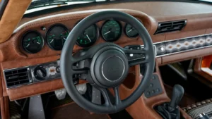 The Rodeo’s real showstopper might be the interior. Inspired by Ralph Lauren Ranch, it’s a luxurious homage to the Old West. Supple leather, reminiscent of a well-worn saddle, adorns the seats, door cards, and headliner. Intricate patterns inspired by Indigenous American art add a unique touch. Titanium pedals and a control panel dominated by knobs and buttons complete the vintage feel, with classic analogue gauges providing all the essential information.