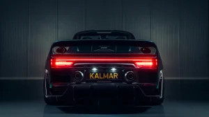 The Kalmar 9X9, which claims to be the world’s first retro hypercar, starts with a stripped 993-series 911, shrouded in a hidden roll cage and clad in CFD-optimized carbon fibre bodywork. This new shell, reminiscent of the 959’s rear end, reportedly generates a serious 1,480 kg (3,263 lbs) of downforce, exceeding the heaviest stock 911’s claimed 1,384 kg (3,051 lbs) by a significant 96 kg (212 lbs).