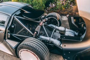 Gear changes are managed by either a manual transmission or, as seen here, a sophisticated dual-clutch gearbox. Handling prowess comes courtesy of bespoke double-wishbone suspension on both axles, while carbon-ceramic brakes ensure phenomenal stopping power. Safety is paramount, with a full FIA-spec roll cage integrated into the car’s core.